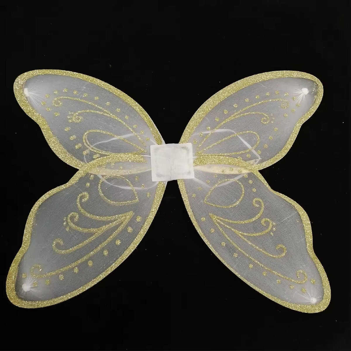 Ge din dräkt en förtrollande touch med våra fjärilsvingar utsmyckade med guldfärgat glitter och förvandlas till en magisk älva. Dessa vingar är det perfekta tillägget till din sagoinspirerade outfit och garanterar att du blir festens stjärna!
