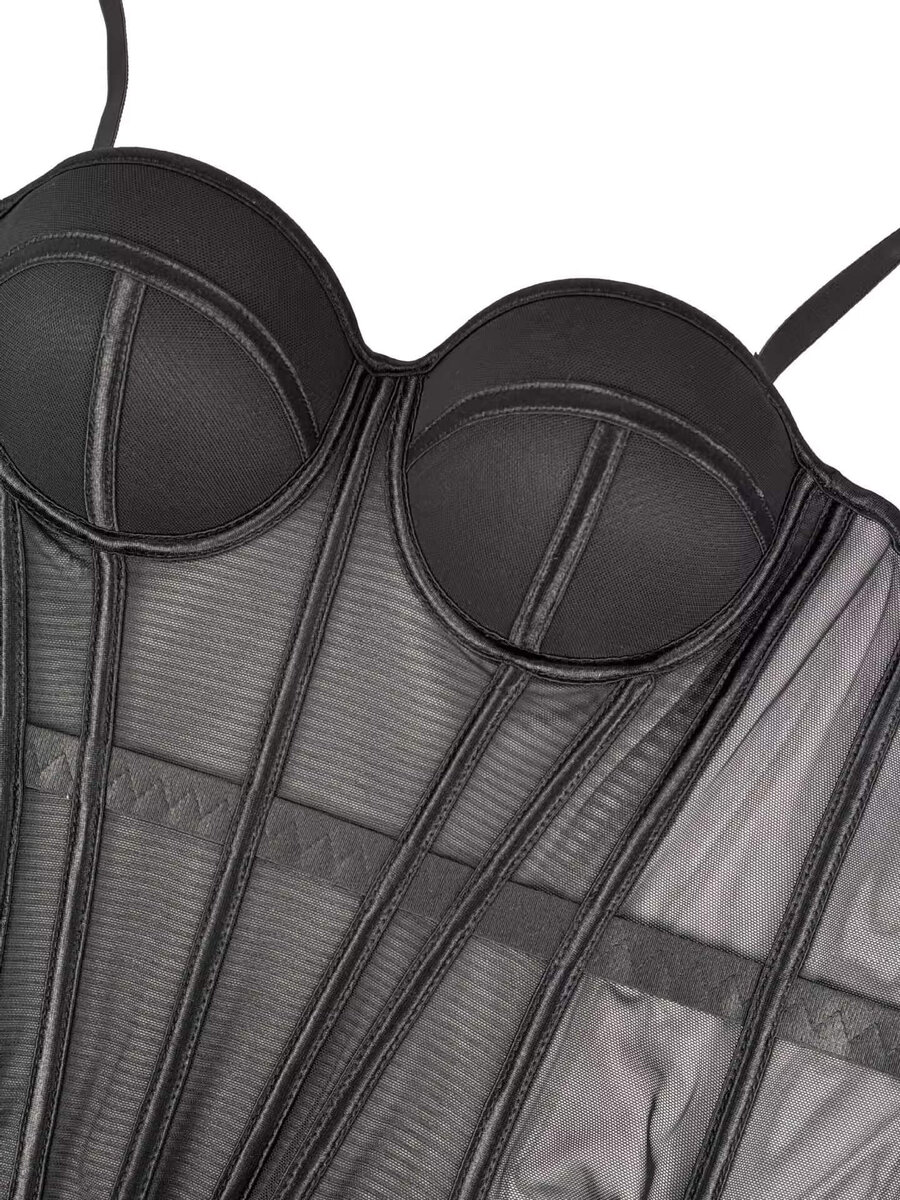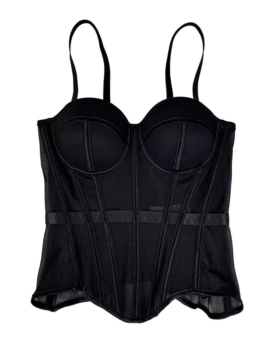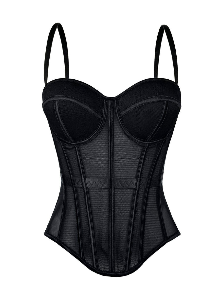 Ge din look en perfekt kombination av elegans och attityd med denna korsettinspirerade bustier-topp. Designad för att framhäva dina former har den en vadderad, formpressad push up-bh som ger ett lyft och en smickrande silhuett.